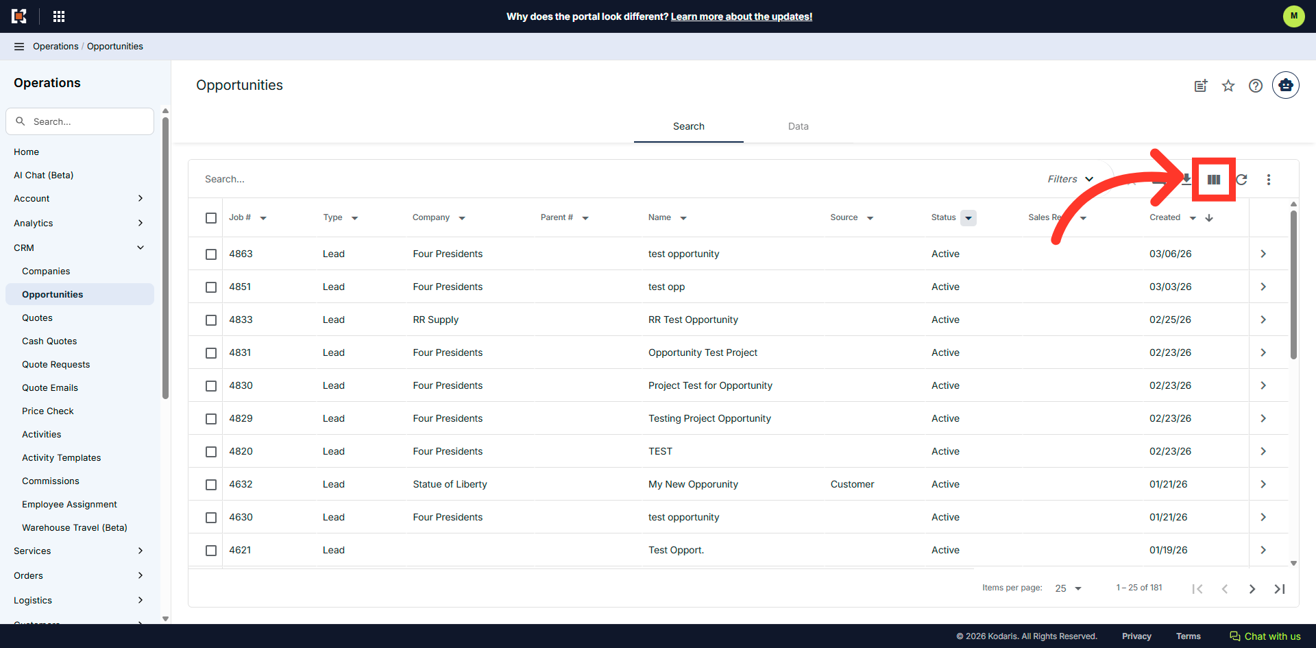 If you need more details when searching for an opportunity, click the "Show/Hide Columns" icon.