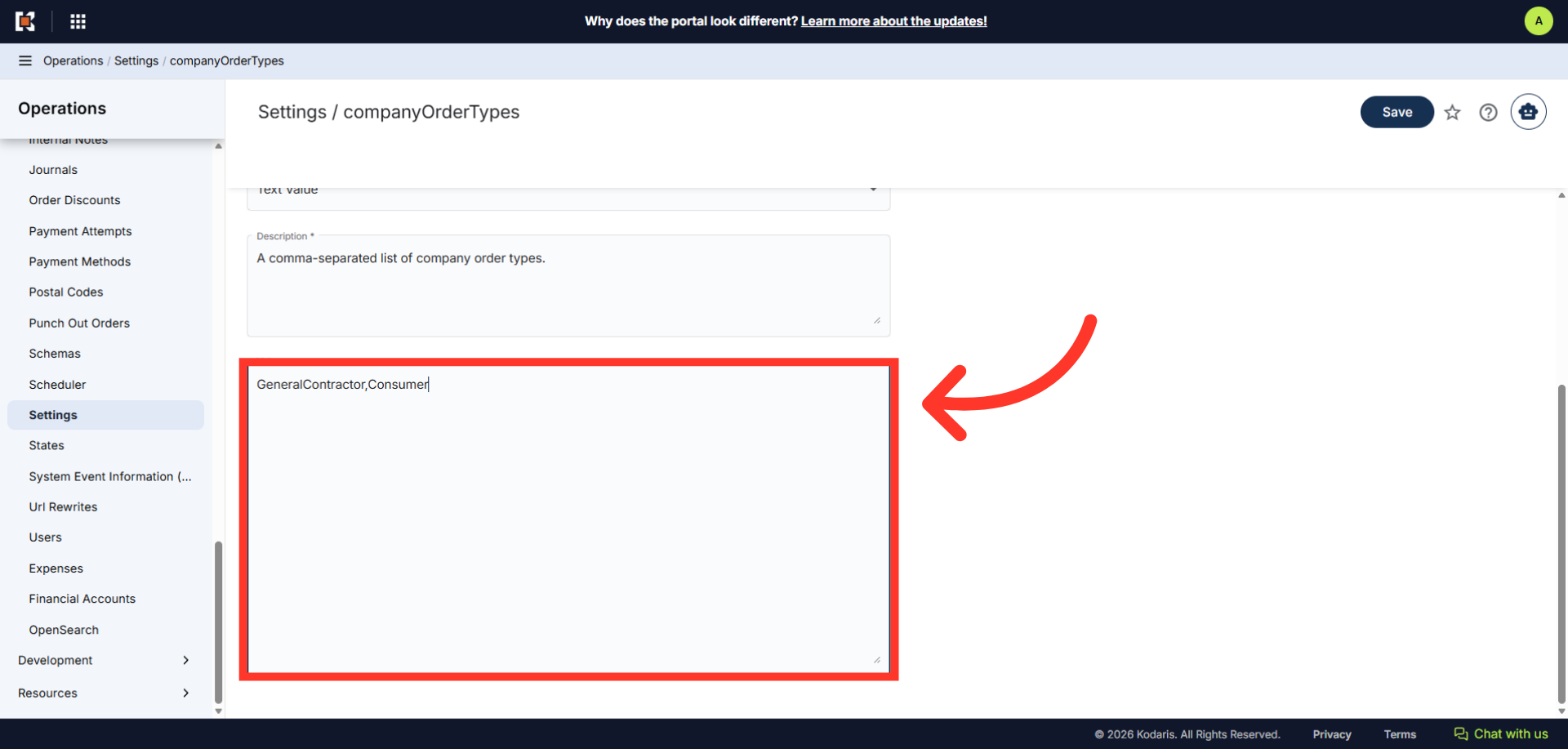 In the "Value" field, enter the Company Categories you would like to add, separated by commas.