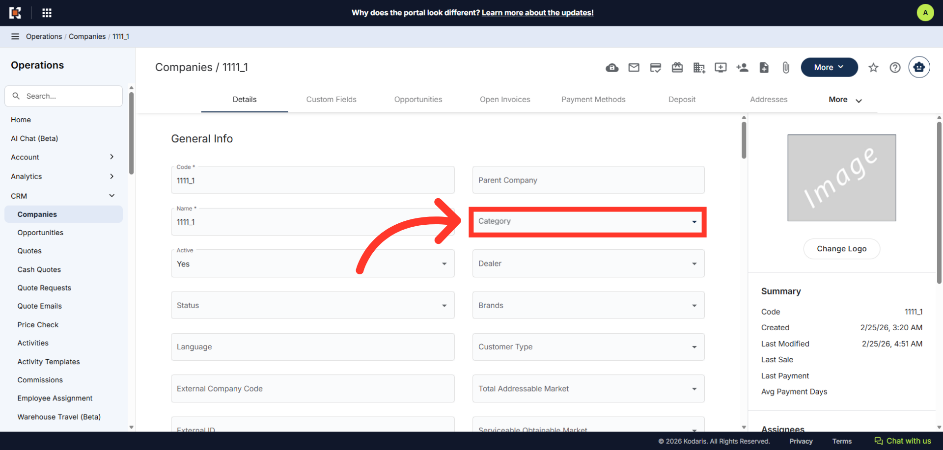 To check this update, on the company details page, click the "Category" dropdown.