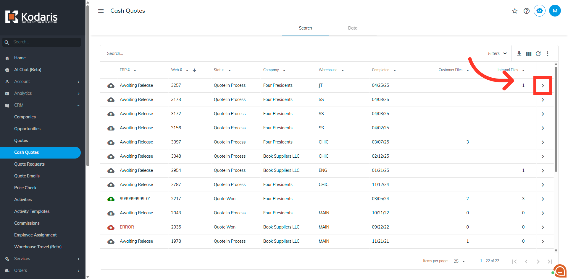 Click "Cash Quotes". In order to access "Cash Quotes", you will need to be set up either as an “administrator” or a “superuser”, or have the following roles: “orderView” and “orderEdit”.