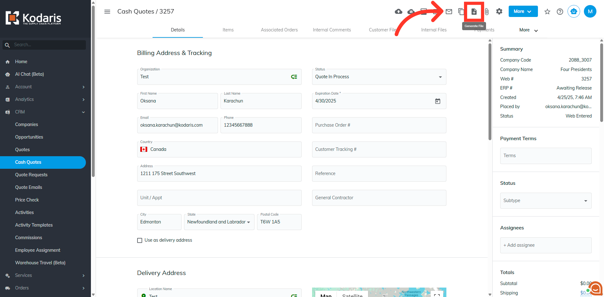 To show proof of delivery when generating PDF Cash Quotes, navigate to the "CRM" section in the operations portal.