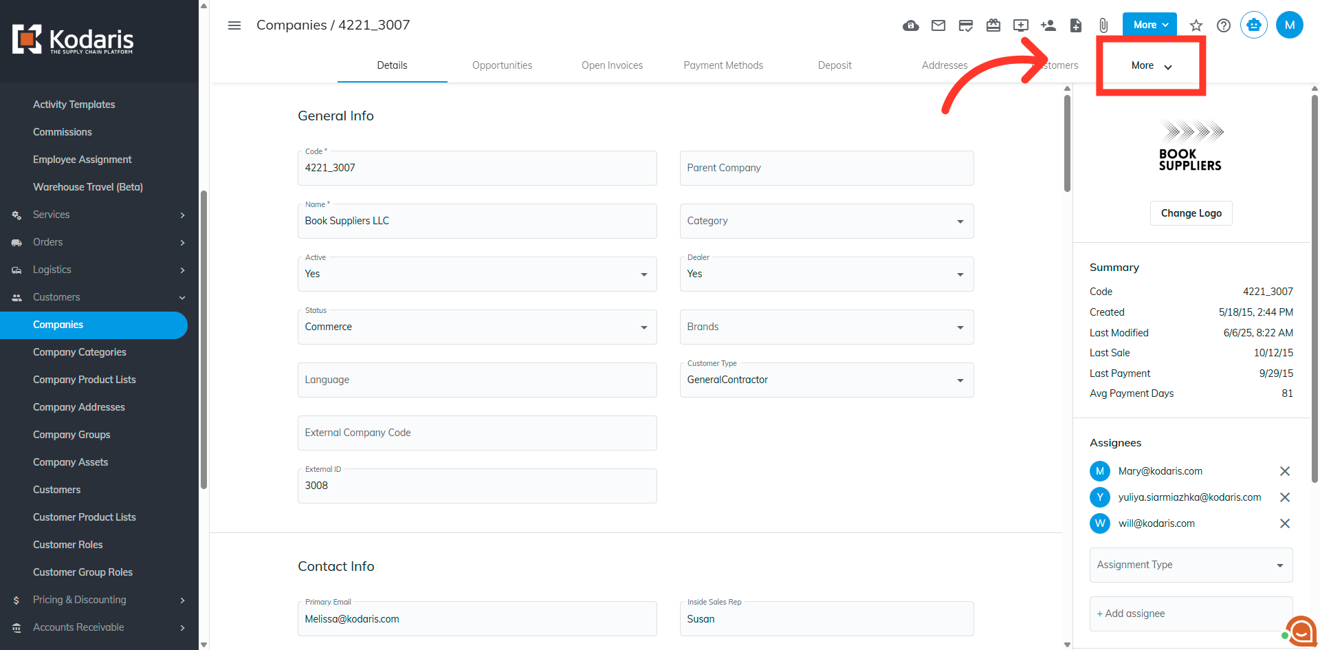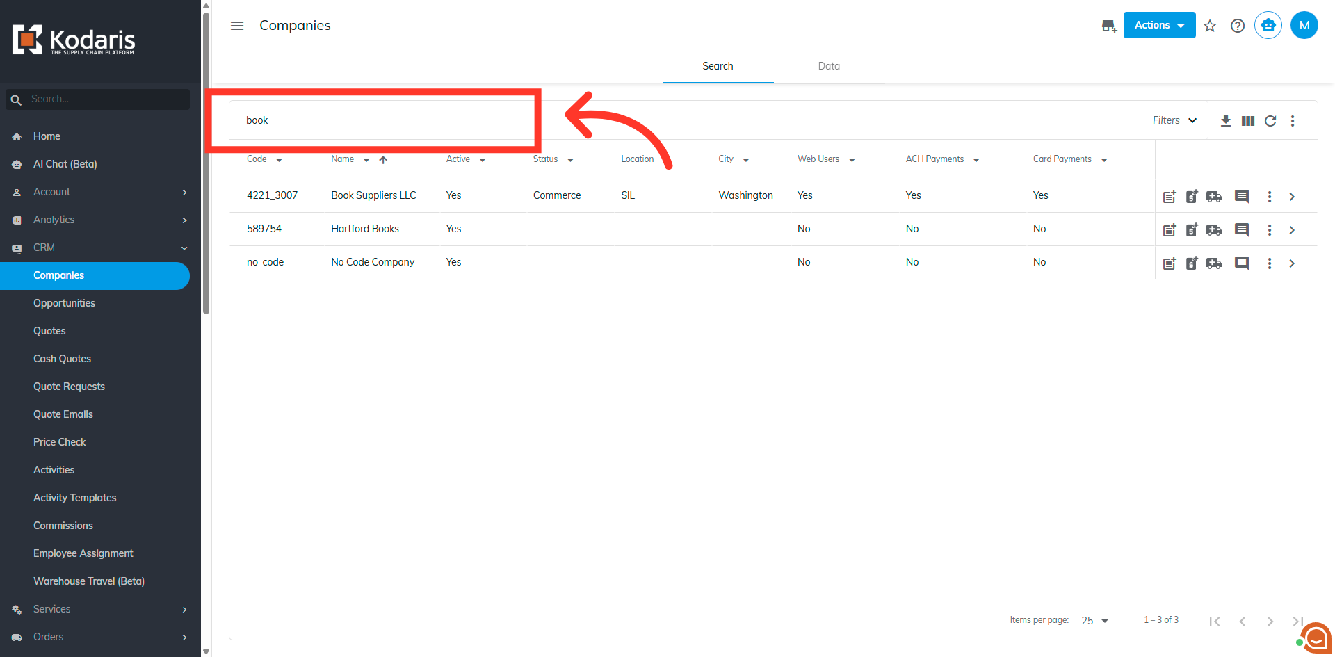 Click "Companies". In order to access "Companies" you will need to be set up either as an "administrator" or a "superuser", or have the appropriate roles: "companyView and companyEdit", or "crmCompanyView and crmCompanyEdit". Just a reminder, "crmCompanyView and crmCompanyEdit" access only allows employees to view companies that are assigned to them.