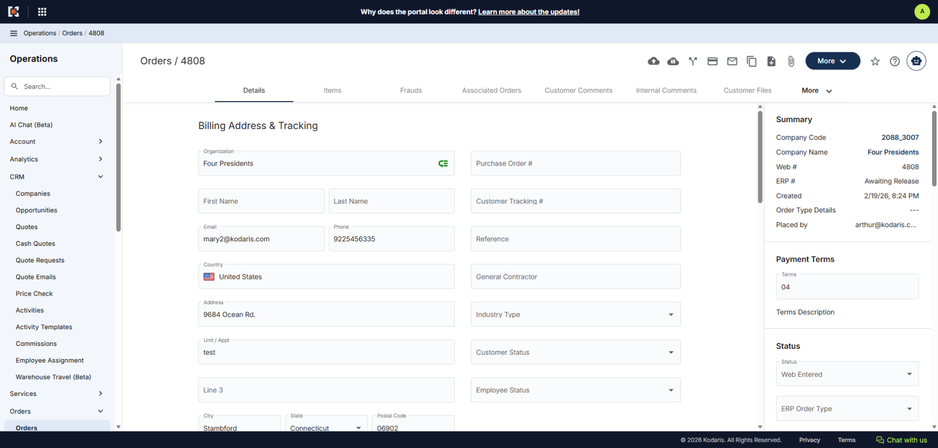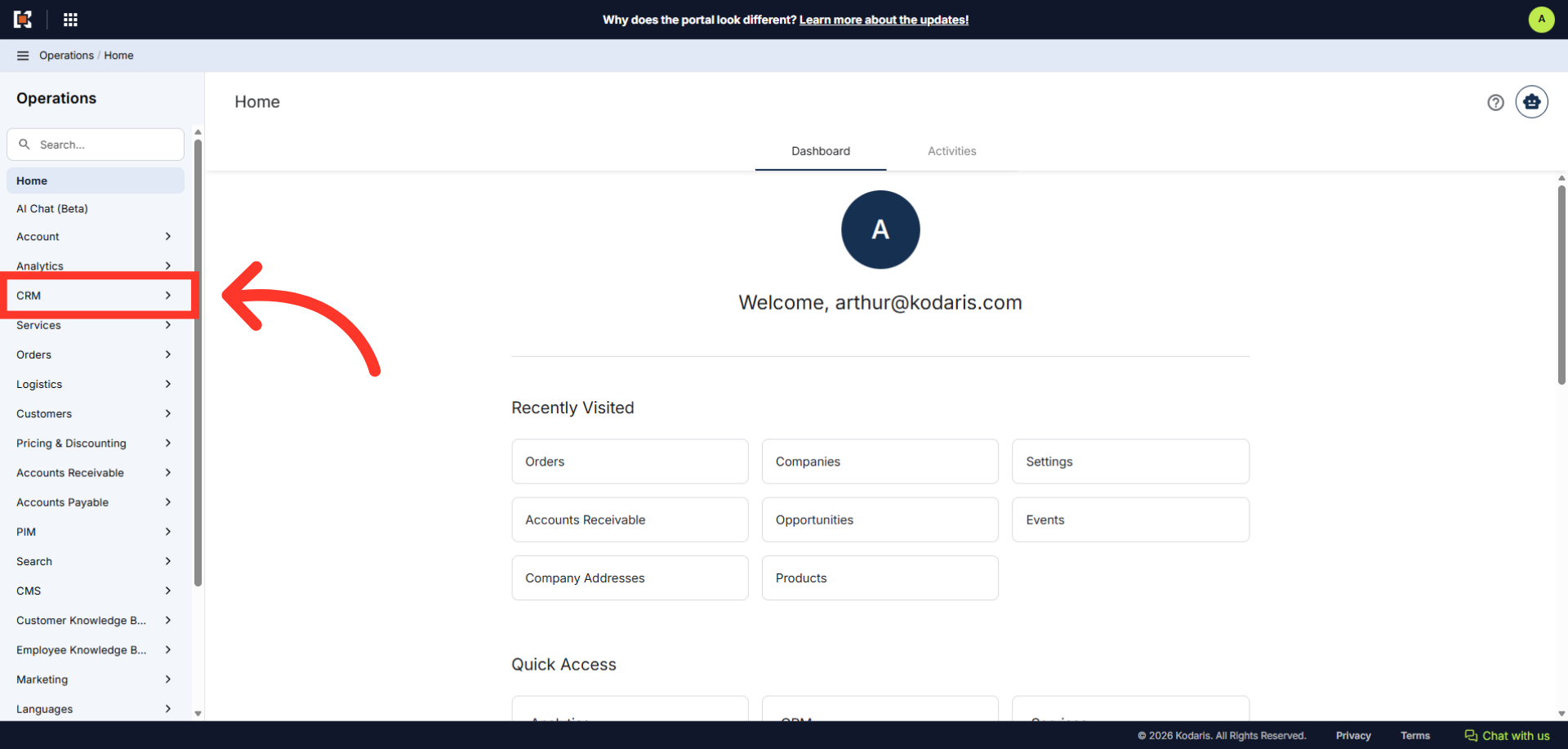 To start an order using the "CRM" section, navigate to "CRM" in the Operations Portal.