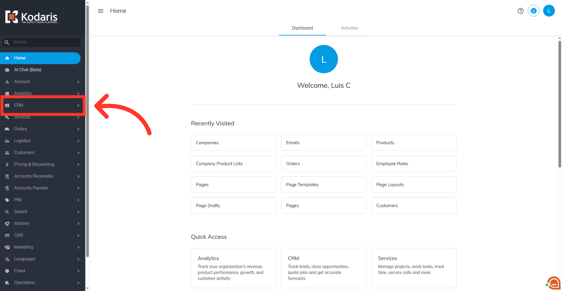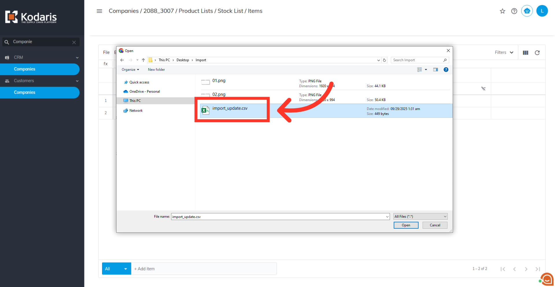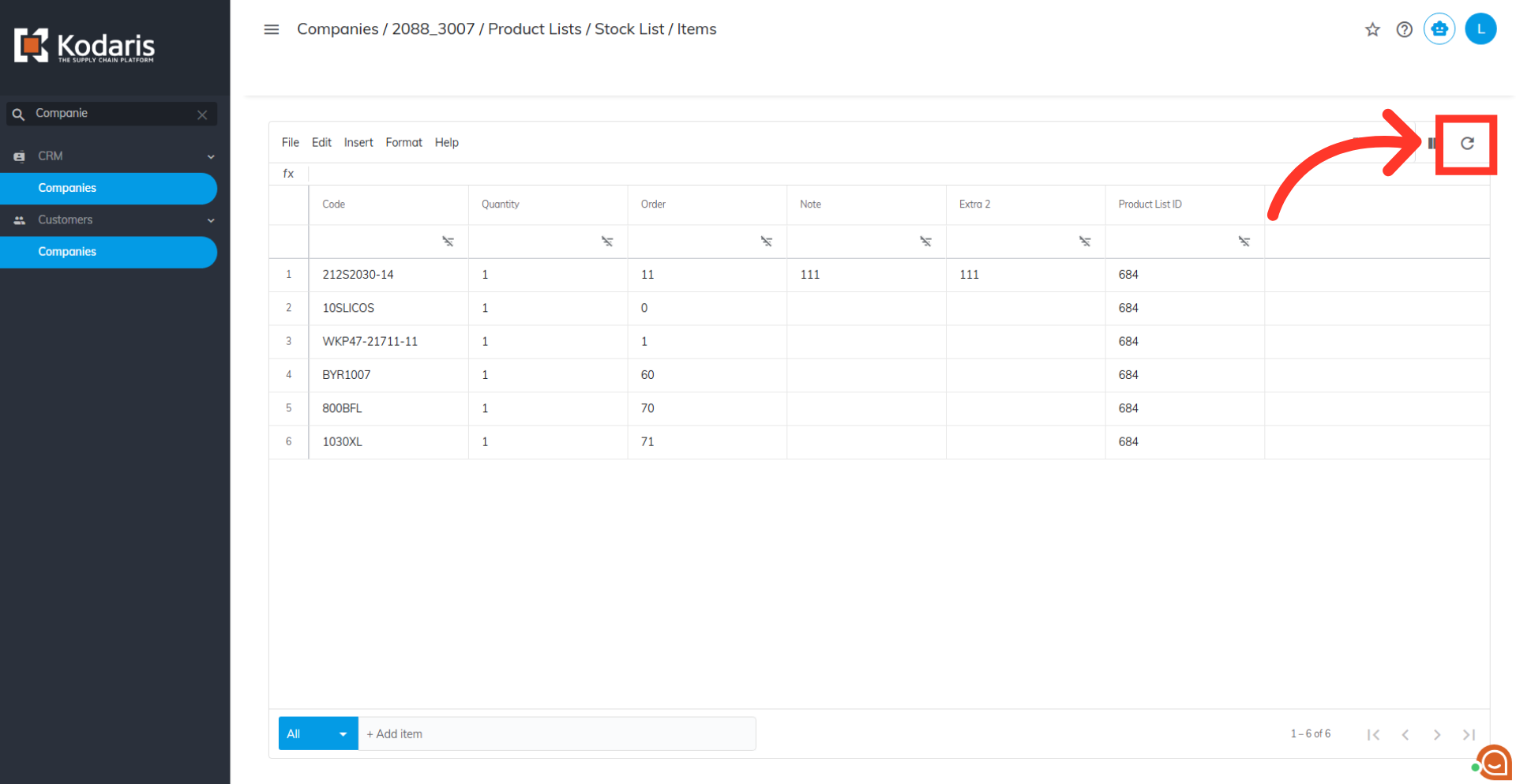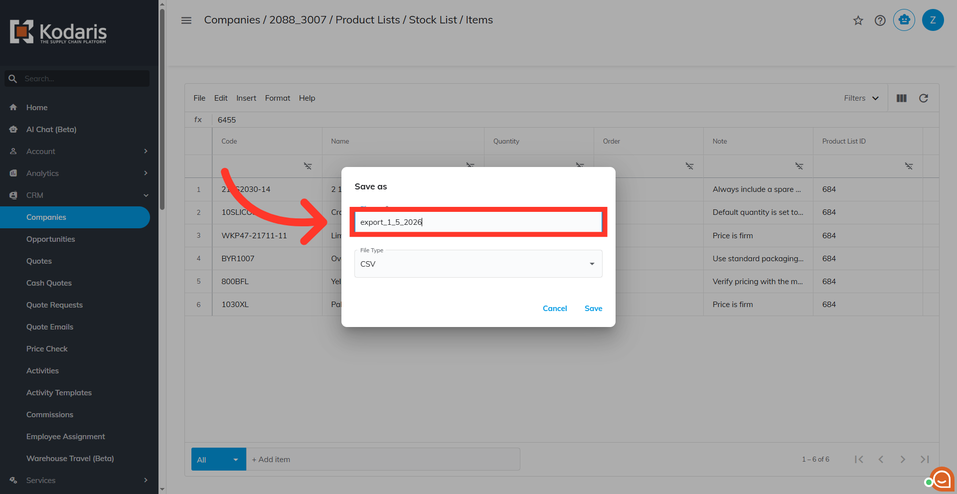 Users can update existing company product lists through CSV file imports. This bulk import method allows you to quickly update product lists rather than manually adding each product individually. To do this, navigate to the "CRM" section in the Operations Portal.