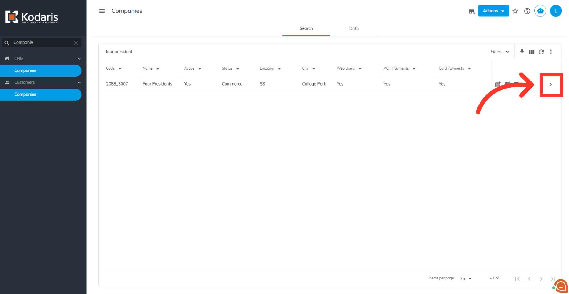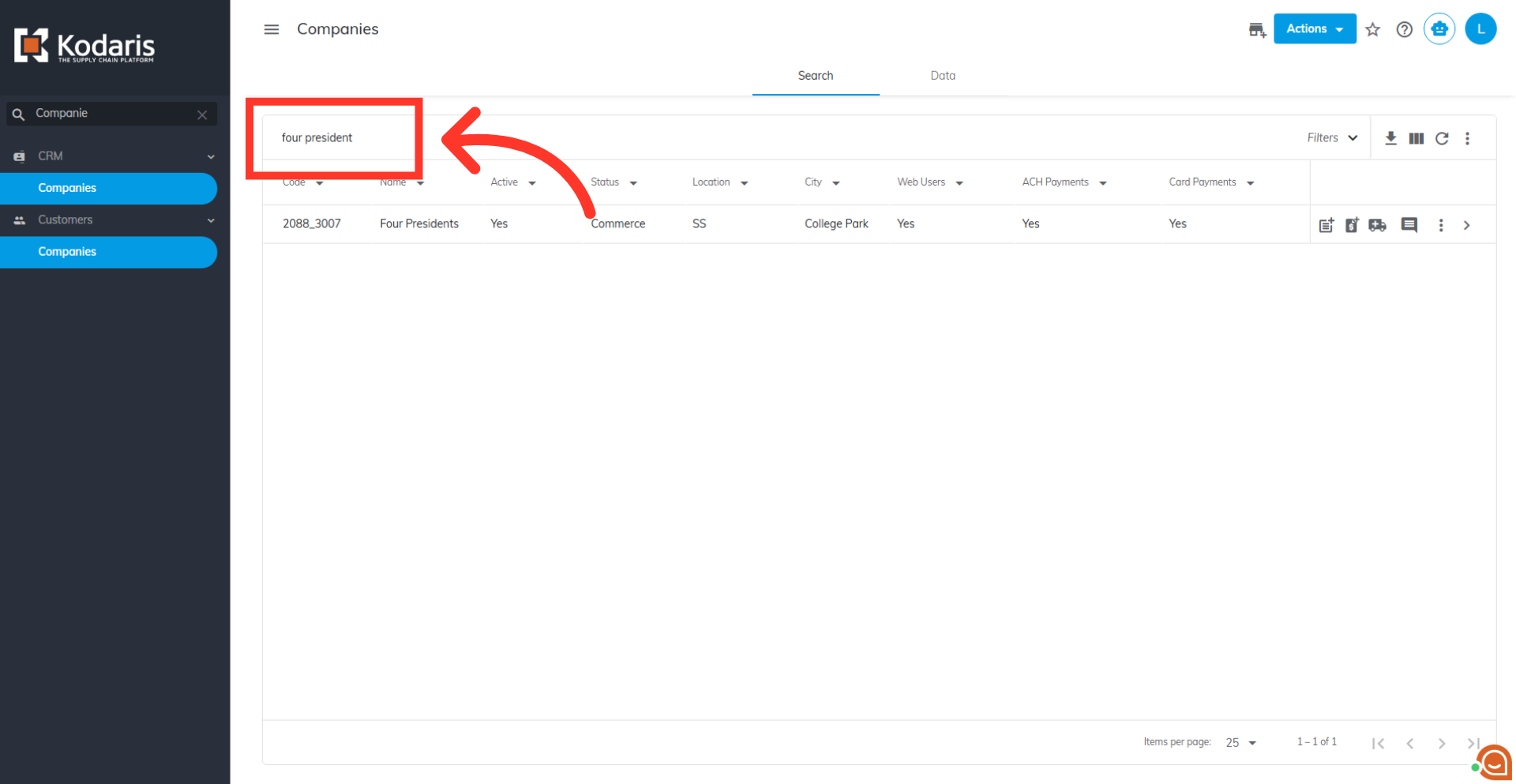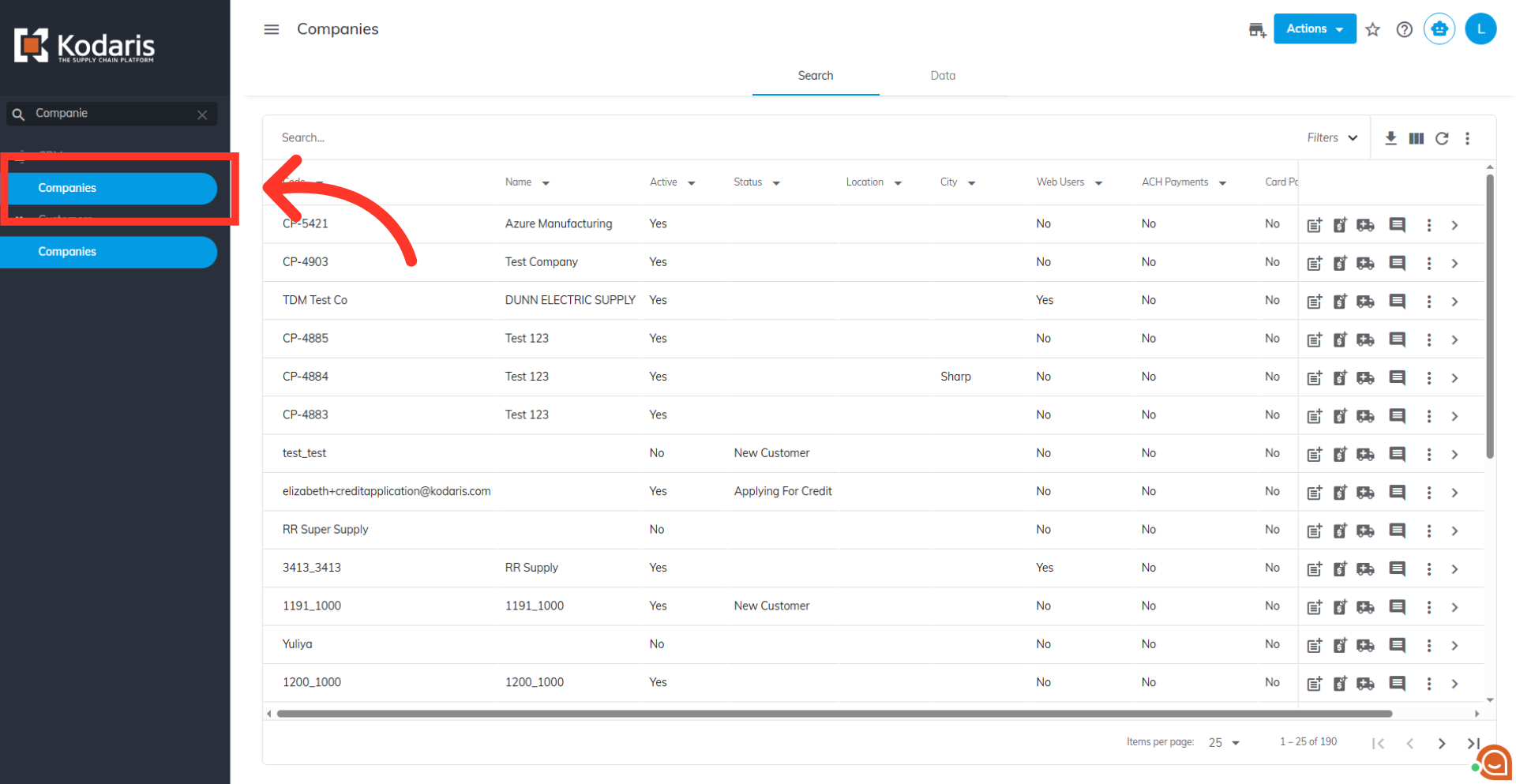 Then, click on the "Companies" screen. In order to access "Companies" screens you will need to be set up either as an "administrator" or a "superuser", or have the appropriate roles: "companyView," "crmCompanyView," "companyEdit," "crmCompanyEdit," and "dispatch." along with "importEdit" and "importView". These last two roles are needed for importing.