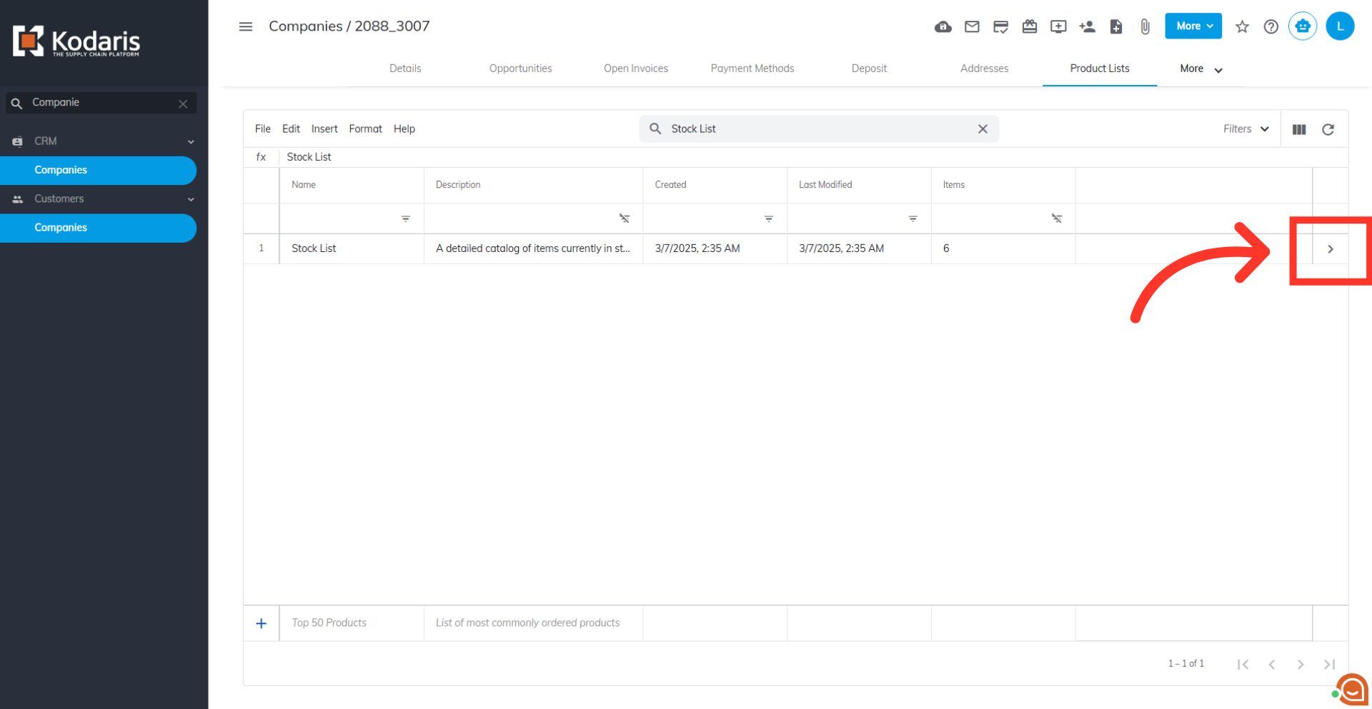 Find the product list you would like to update, and click on the more details icon to view the list items.