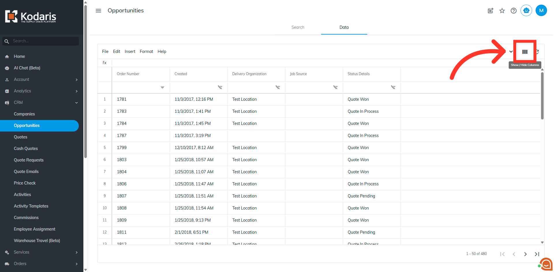 Add the column to your screen by clicking the "Show/Hide Columns" icon and select the column.