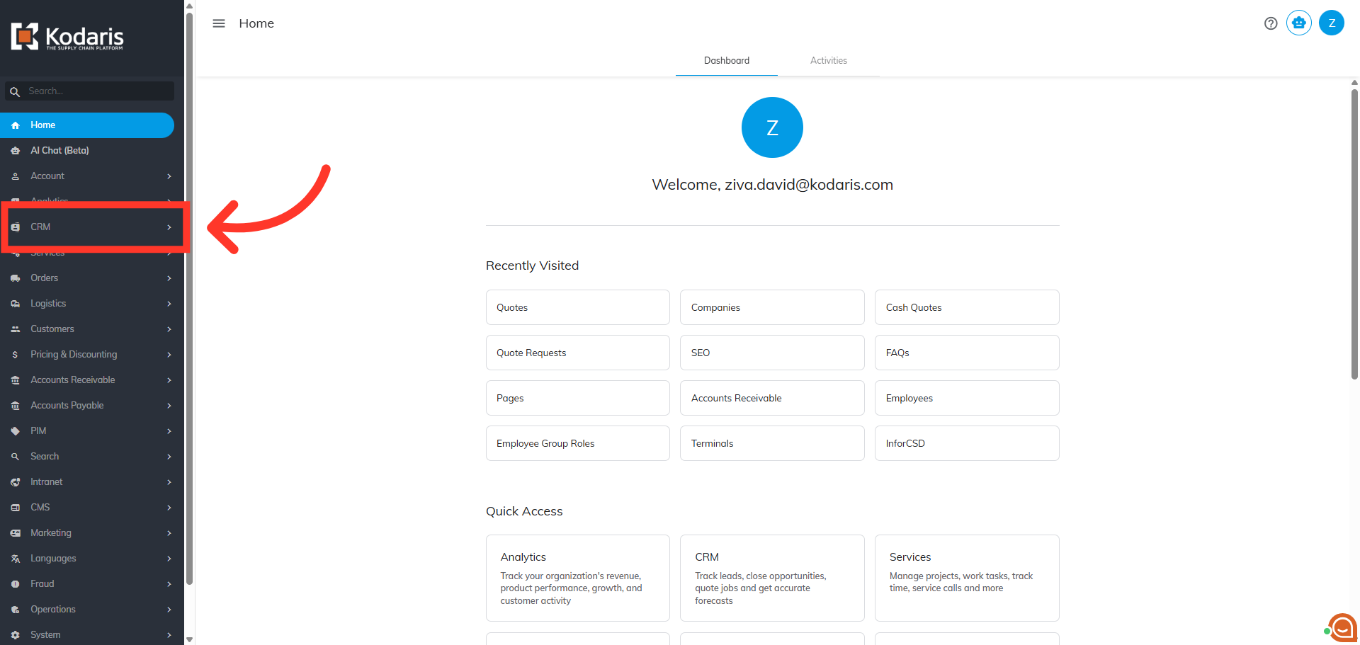 In order to add additional charges to a quote, you will need to navigate to the "CRM" section in the Operations Portal.