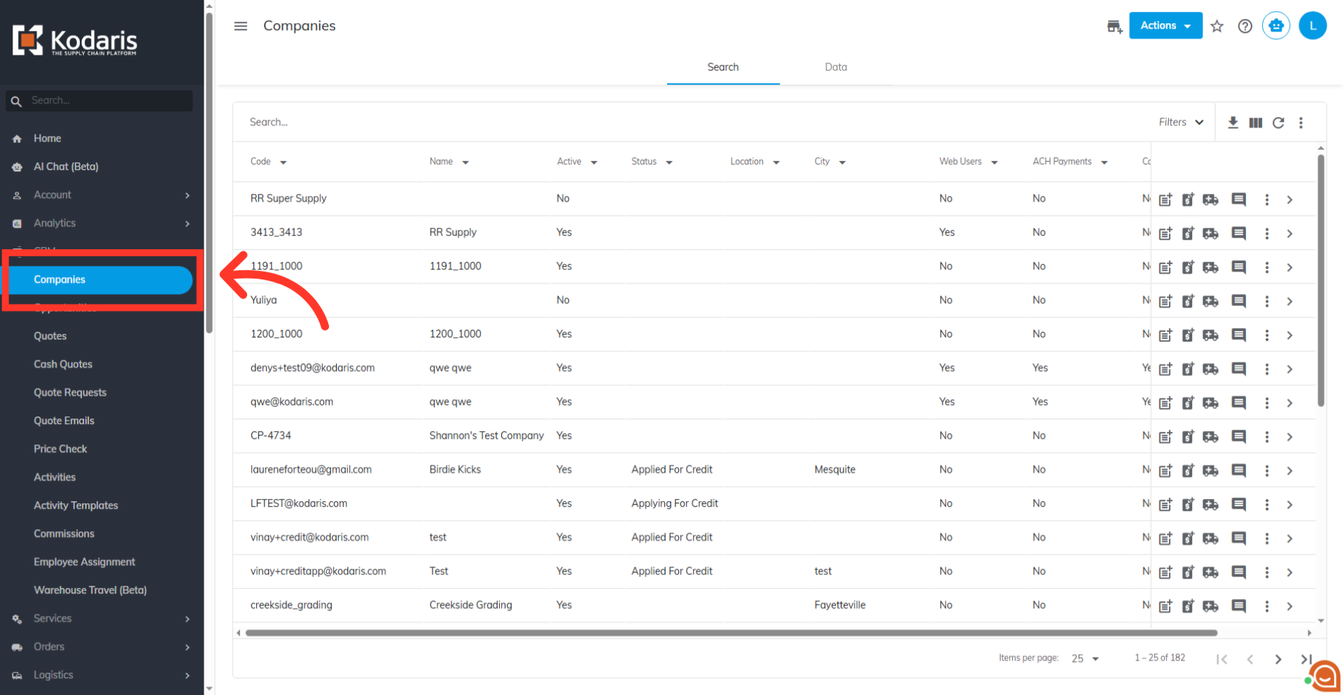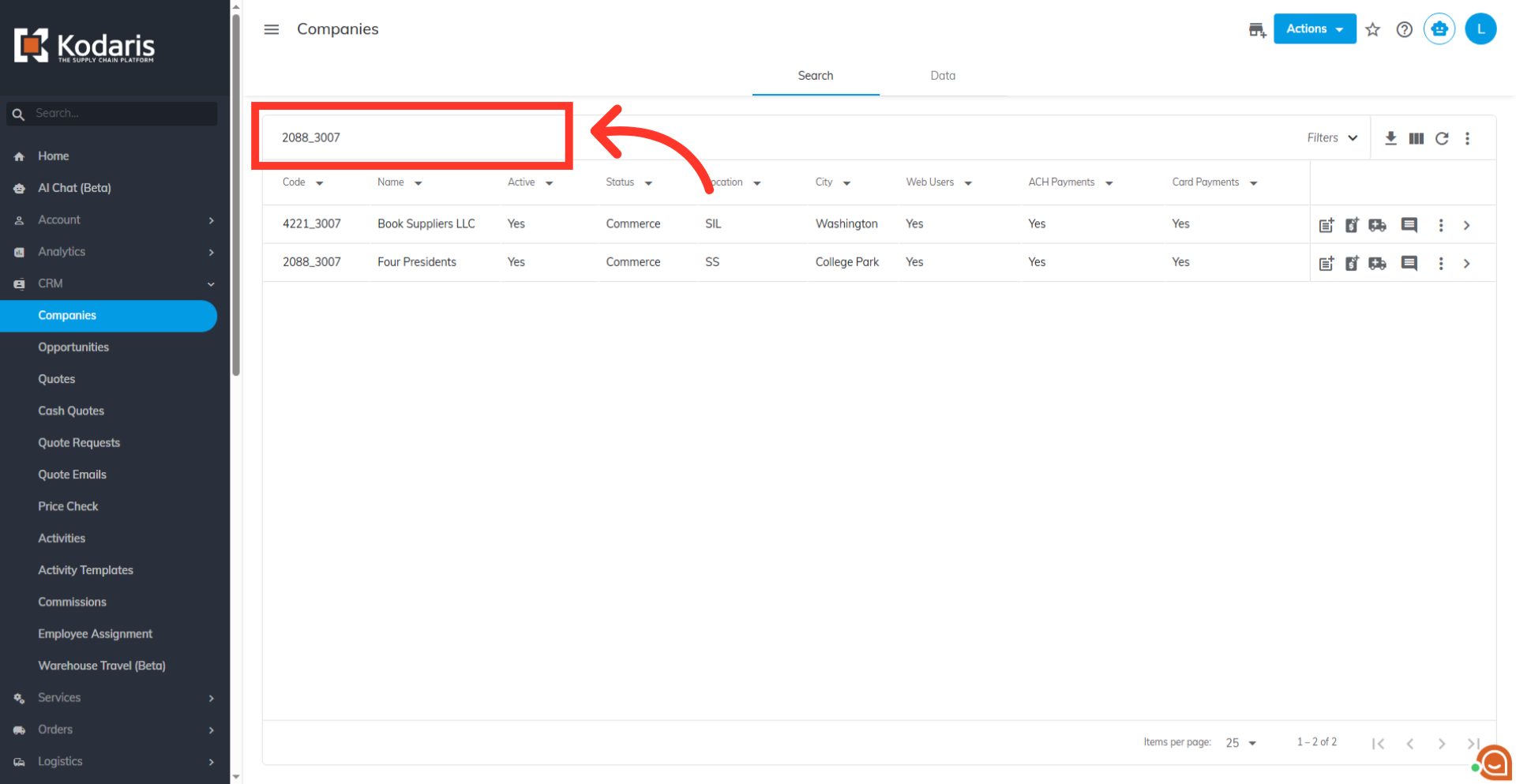Use the "search bar" or "column filters" to find a company. Enter the company name or a keyword to narrow your search.