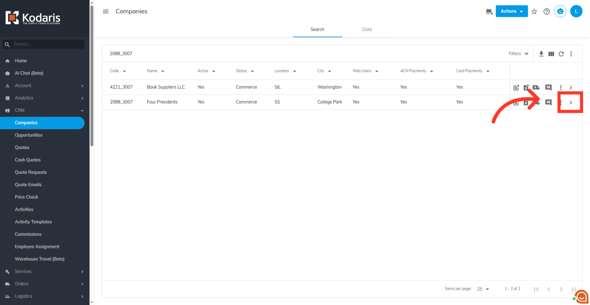 Then, click the more details icon to access company details.