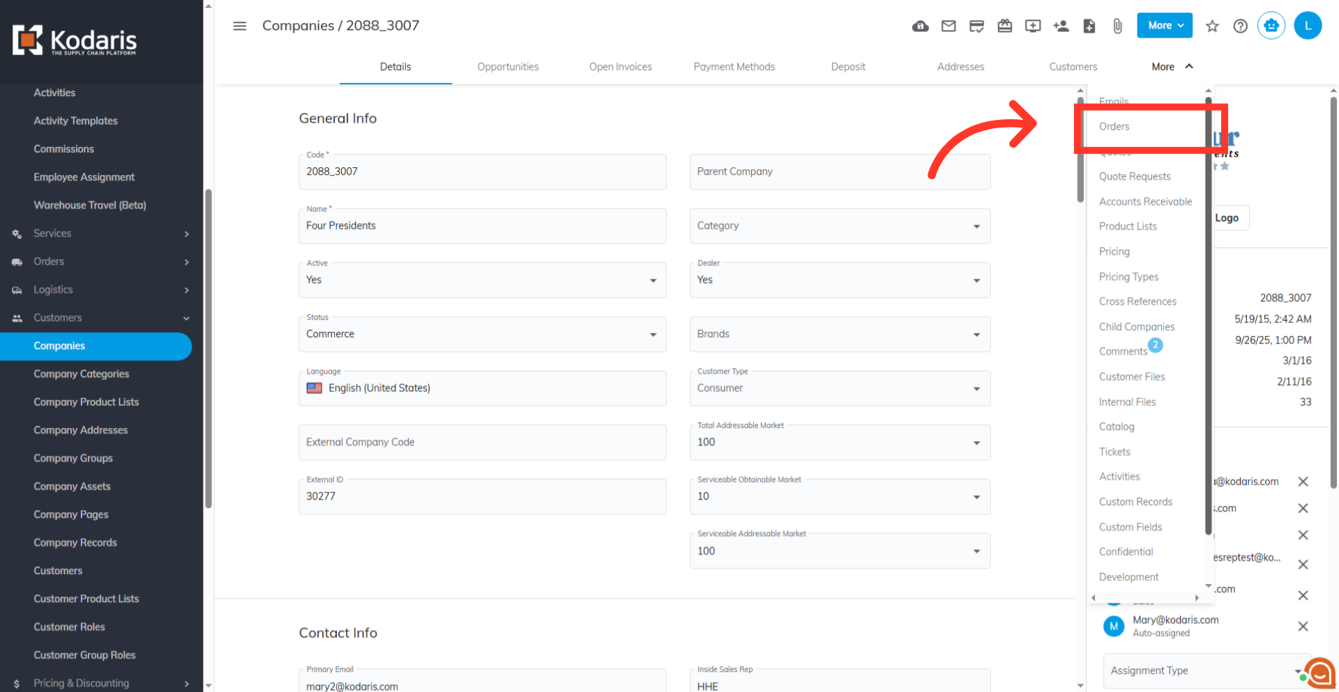Under the "More" dropdown, click the "Orders" tab.