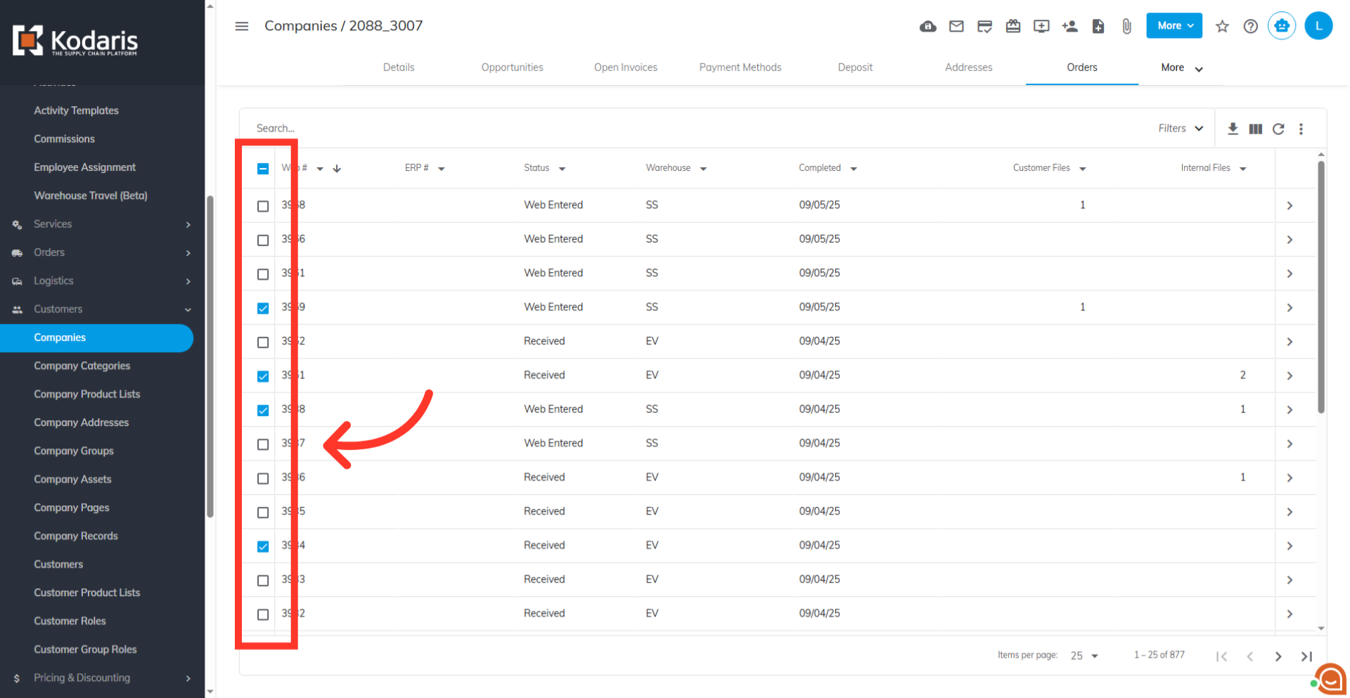 Here, select the orders you want to generate PDFs for by using the checkboxes next to each one. Use the top checkbox to select or deselect all orders at once.