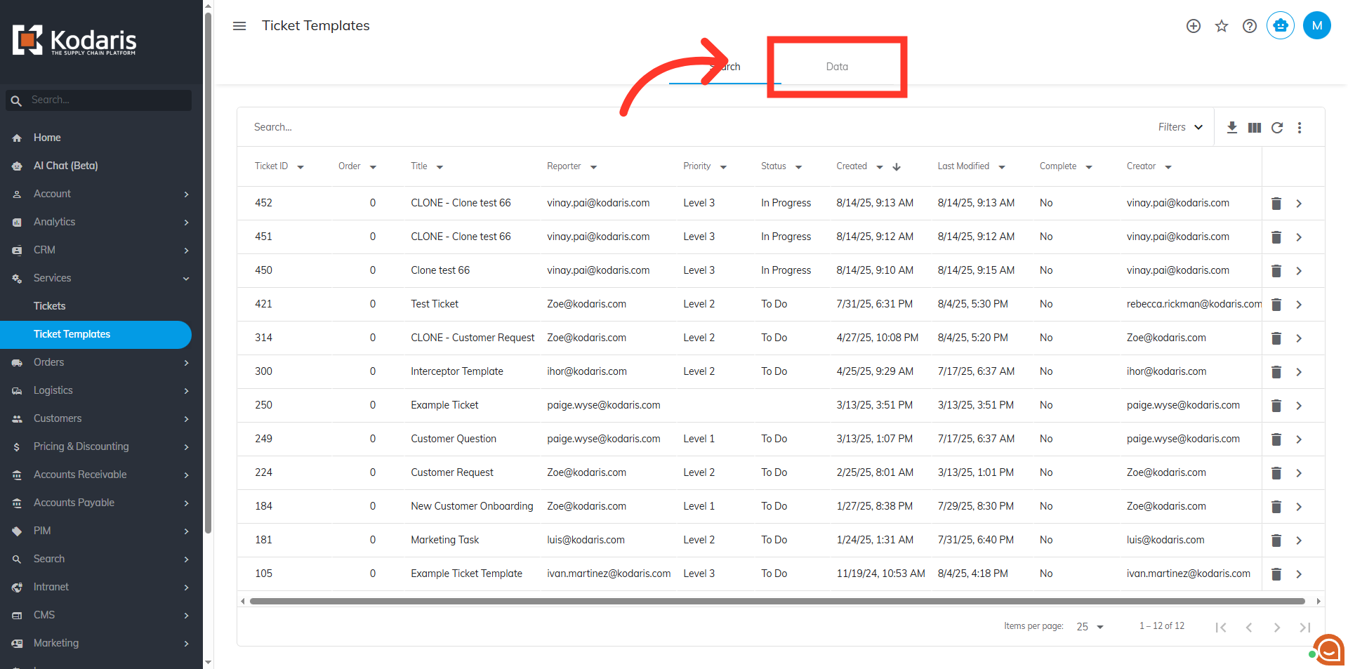 Then, click "Ticket Templates". In order to access and edit ticket templates, you will need to be set up either as an “administrator” or a "superuser", or have the following roles: "ticketEdit" and "ticketView".