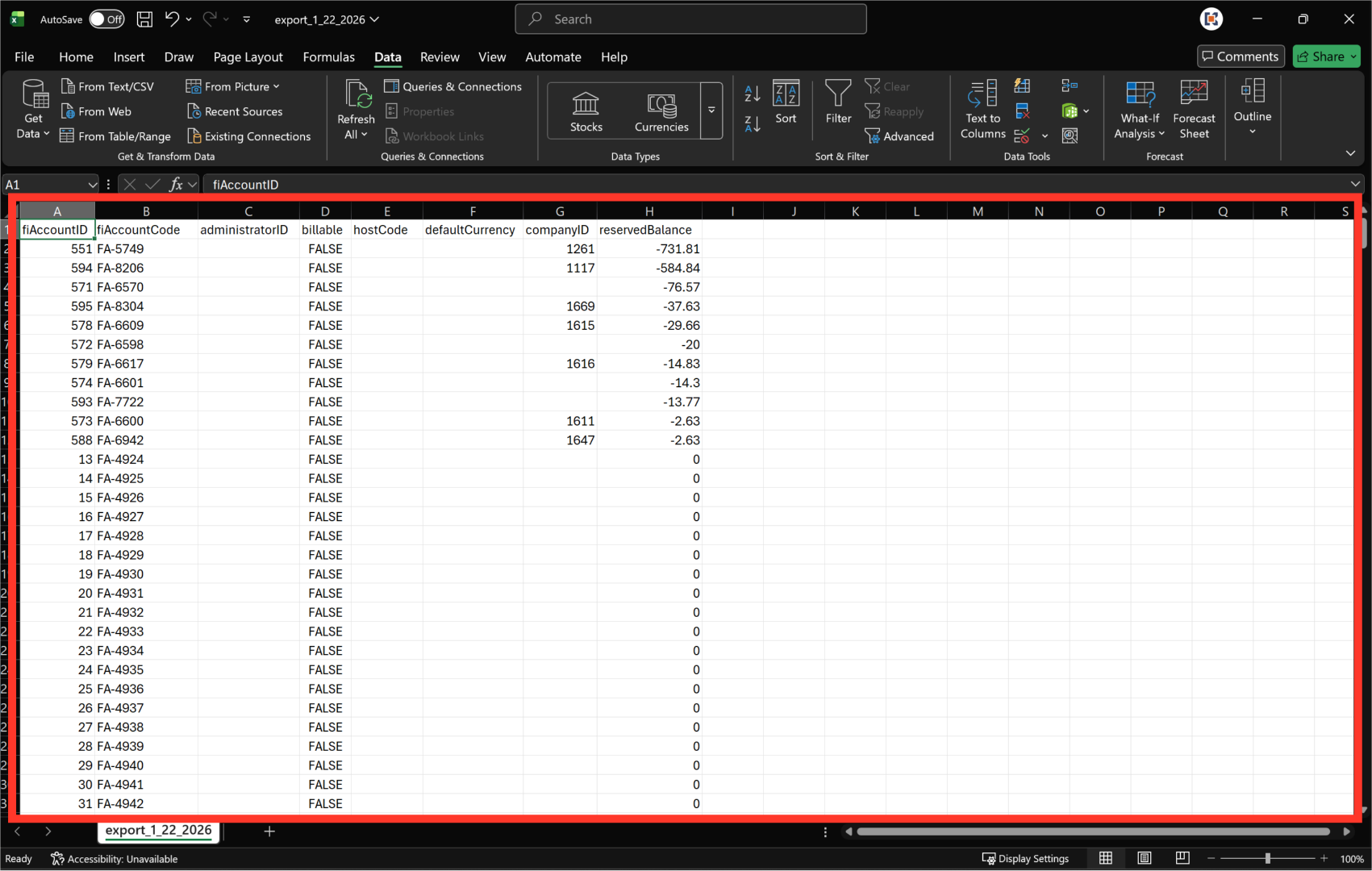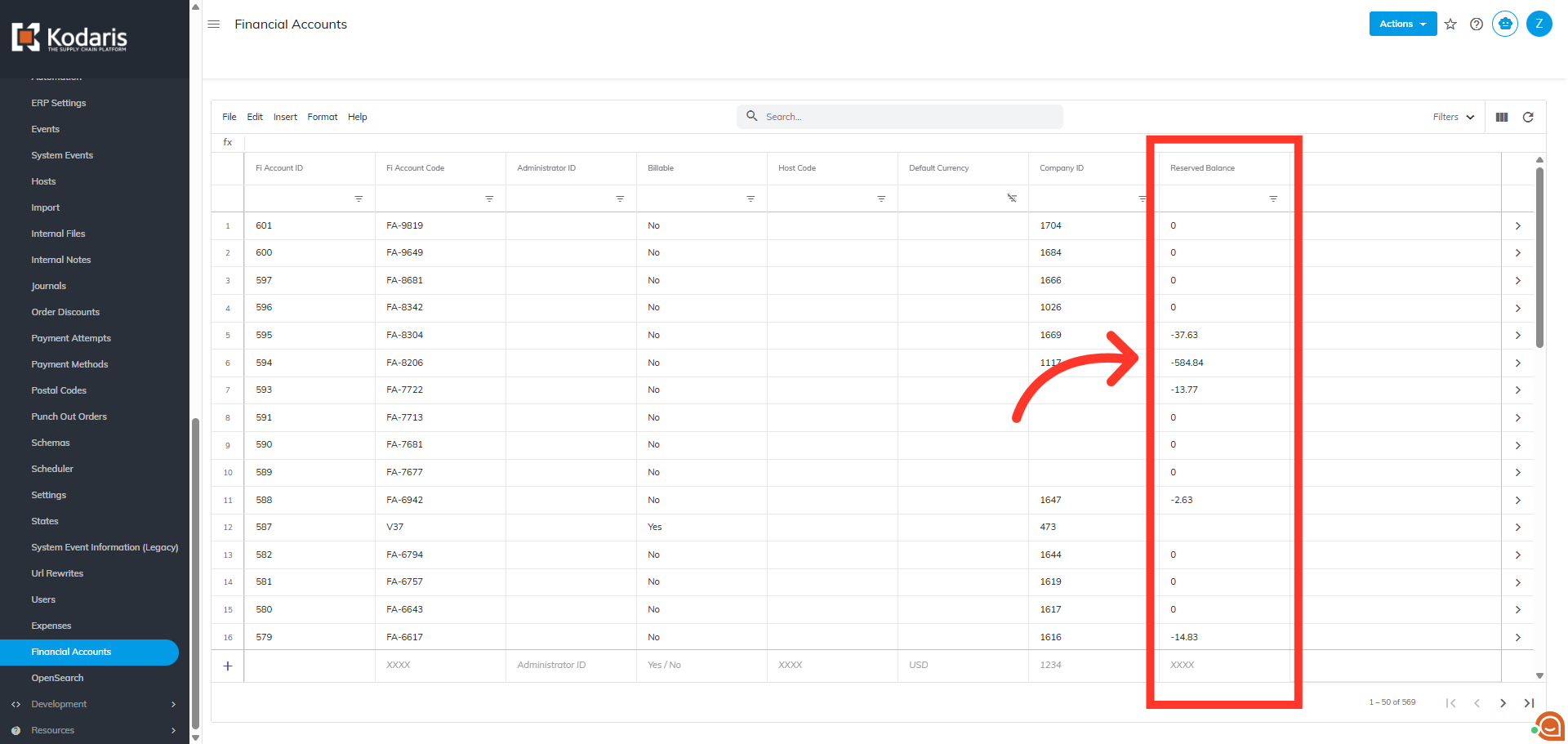 This screen is a global overview of all the financial account data in the system. You can add additional options by clicking the "Show/Hide Column" icon.