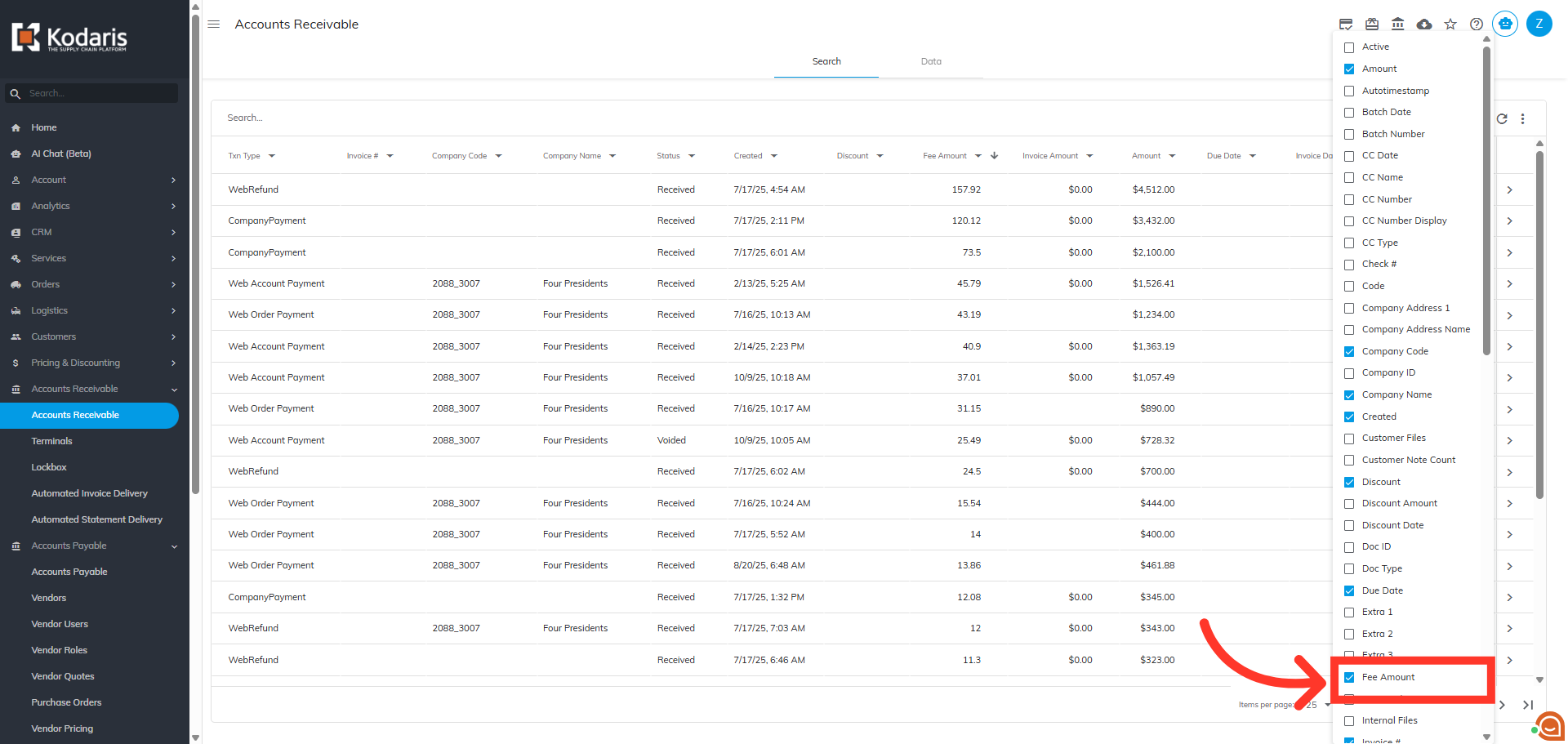 Then, selec the "Fee Amount" option to include fee details in your grid view.